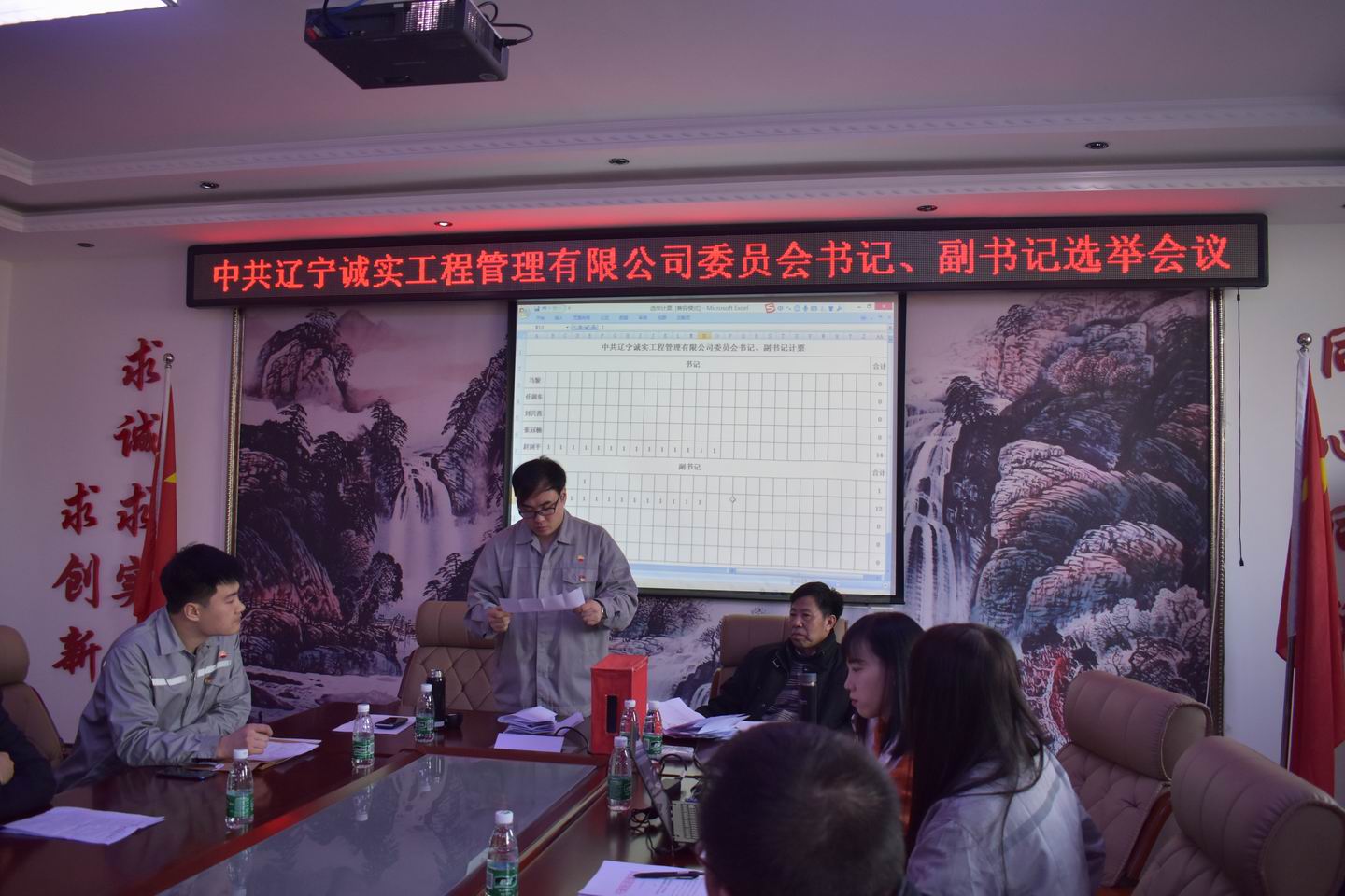 會上首先由張冠楠同志宣讀了新工委字【2019】1號文件《關(guān)于同意中共遼寧誠實工程管理有限公司委員會選舉書記、副書記的批復(fù)》,接著趙紫伊同志向大會介紹書記、副書記候選人情況并通過,鄧戎龍同志宣讀選舉辦法并通過,大會通過了尋藍春同志為本次選舉工作的監(jiān)票人,鄧戎龍、趙紫伊兩位同志為本次選舉工作的計票人,在監(jiān)票人尋藍春的組織下,參會黨員差額選舉產(chǎn)生了中共遼寧誠實工程管理有限公司新的書記和副書記。選舉結(jié)果:趙劍平為黨委書記,任潤東為黨委副書記。目前新的黨委由5名委員組成,分別是任潤東、張冠楠(女)、趙劍平、馬駿、劉興善。其中設(shè)書記1名,副書記1名。老黨委書記講話,新、老兩位書記進行工作交接儀式,最后新黨委書記在大會上作了表態(tài)發(fā)言。