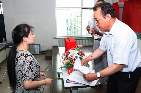 監(jiān)票人程貴昌、王金明同志在統(tǒng)計(jì)選票