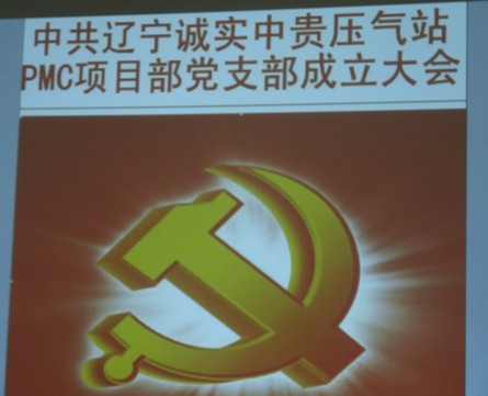 2013年7月21日遼寧誠(chéng)實(shí)中貴線壓氣站PMC項(xiàng)目部黨支部成立大會(huì)正式召開(kāi),大會(huì)由公司黨委委員趙樹(shù)環(huán)同志主持,首先介紹了了黨支部成立的意義和目的,然后進(jìn)入了大會(huì)流程。通過(guò)全體黨員民主評(píng)議、選舉,盛孝福同志當(dāng)選為PMC項(xiàng)目部黨支部書記,師興華同志當(dāng)選為黨支部組織委員,胡德林同志當(dāng)選為黨支部宣傳委員,趙樹(shù)環(huán)同志代表公司黨委對(duì)黨支部成立表式祝賀。黨支部全體黨員在黨旗下進(jìn)行了鄭重宣誓,最后由黨支部書記作表態(tài)發(fā)言。