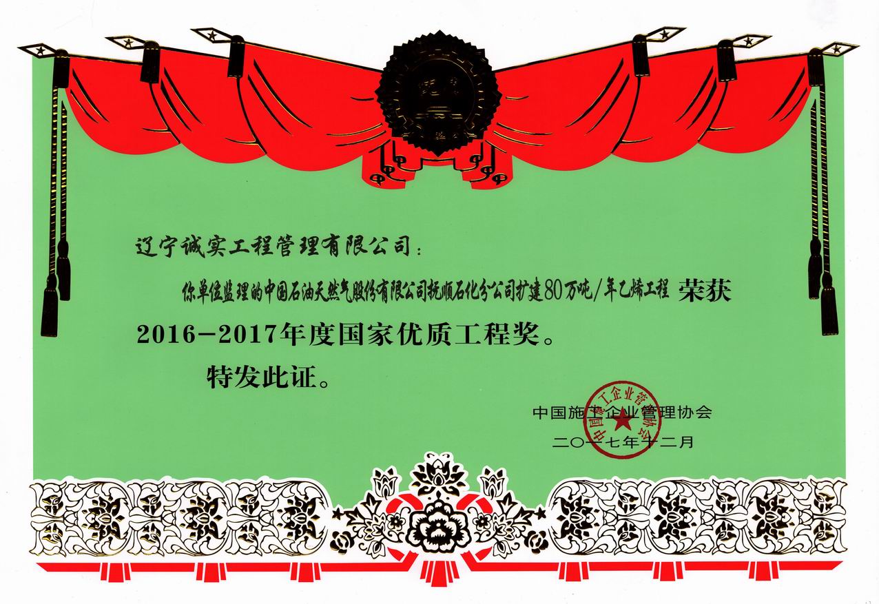 2016-2017年國家優(yōu)質(zhì)工程獎(撫順...