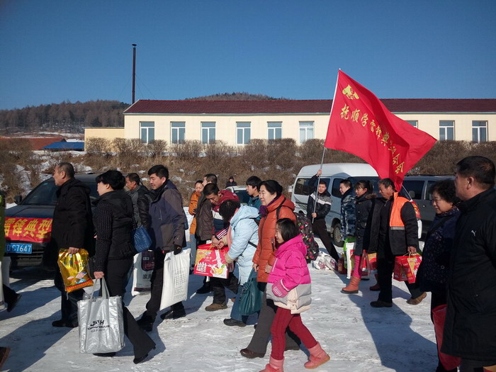 早上9點(diǎn),滿載著大米、白面、豆油等捐助物的7輛汽車從撫順北站出發(fā),一路向東前往清源甘井子小學(xué)。中午10點(diǎn)半,車隊(duì)到達(dá)清源英額門鎮(zhèn),在當(dāng)?shù)貙W(xué)雷鋒典型聯(lián)合會(huì)分會(huì)劉先生的帶領(lǐng)之下,車隊(duì)于11點(diǎn)到達(dá)了清源甘井子小學(xué)。車輛剛剛駛?cè)雽W(xué)校,迫不及待的學(xué)生以及學(xué)生家長(zhǎng)們就都出門迎接了出來。找到各自幫扶對(duì)象的17位孩子見到了自己的資助人都激動(dòng)得熱淚盈眶。在甘井子小學(xué)高校長(zhǎng)的帶領(lǐng)下,大家把資助物品紛紛運(yùn)到了學(xué)校食堂。在食堂把物品授予了這17位孩子,百姓雷鋒們也為他們派發(fā)了新春紅包,并與他們進(jìn)行了親切的交流,目的是鼓勵(lì)這17位家庭困難的學(xué)生好好學(xué)習(xí),勇敢的面對(duì)生活。