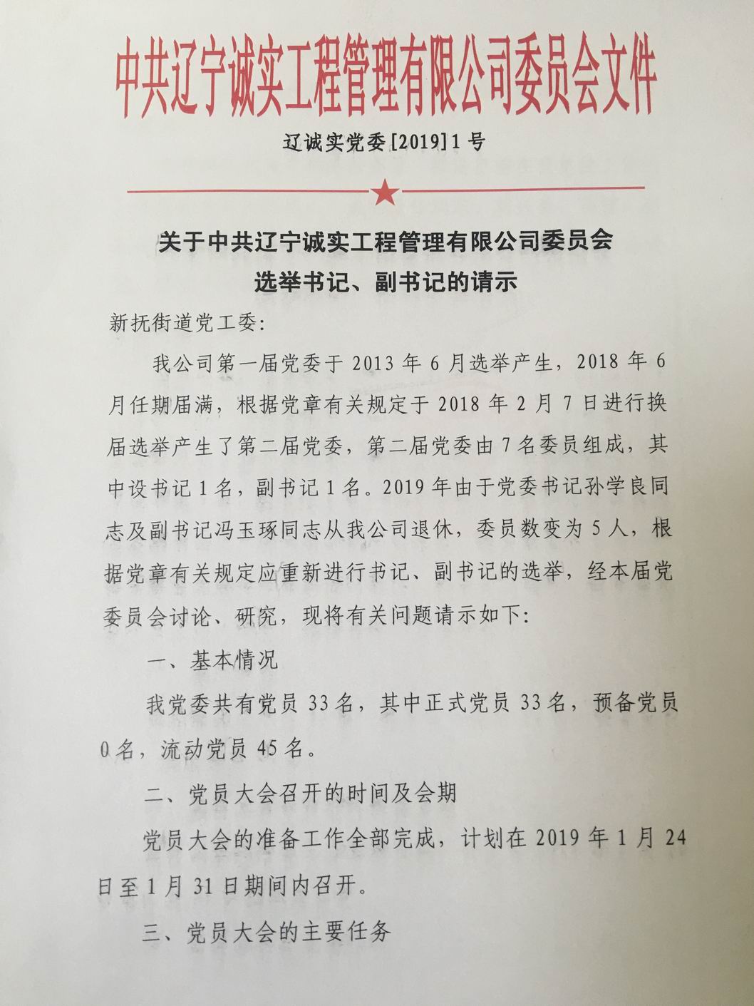 熱烈慶祝中共遼寧誠實工程管理有限公司委員會書記、副書記選舉工作圓滿完成