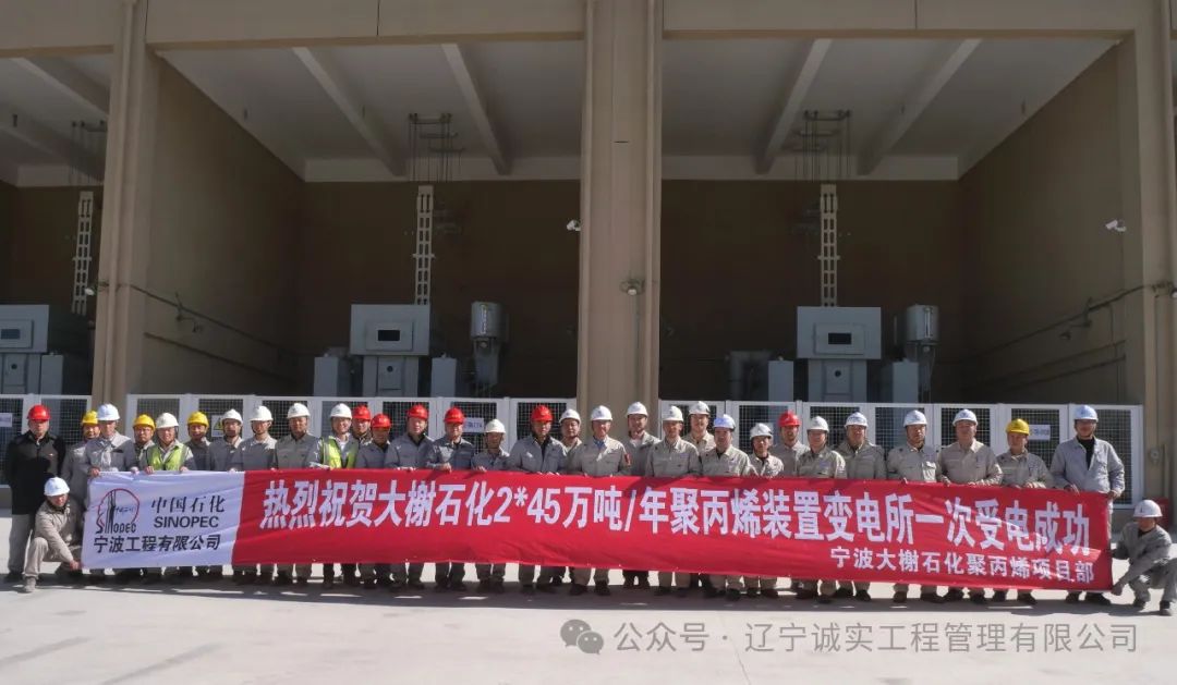 2024年11月28日11時(shí)18分,在各參建單位緊密配合下,中海油寧波大榭石化2*45萬噸/年聚丙烯裝置變電所一次受電成功!為項(xiàng)目后續(xù)設(shè)備試運(yùn)行提供了良好的保障!項(xiàng)目部總監(jiān)理工程師王聰(后排左14)、電氣專監(jiān)石軍(后排左1)參加了儀式合影。