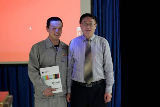 跳棋獲勝者徐峰領(lǐng)取獎品