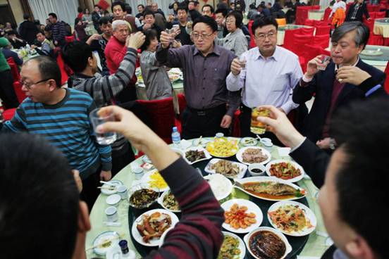 公司董事長趙劍平在晚餐會上致祝酒詞