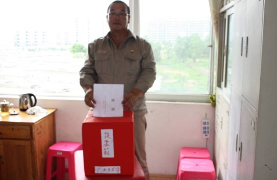 廣西視頻會(huì)場(chǎng)的黨員在投票選舉