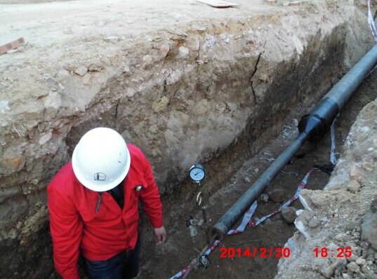 消防水管做水壓試驗(yàn),地下管網(wǎng)完成70%